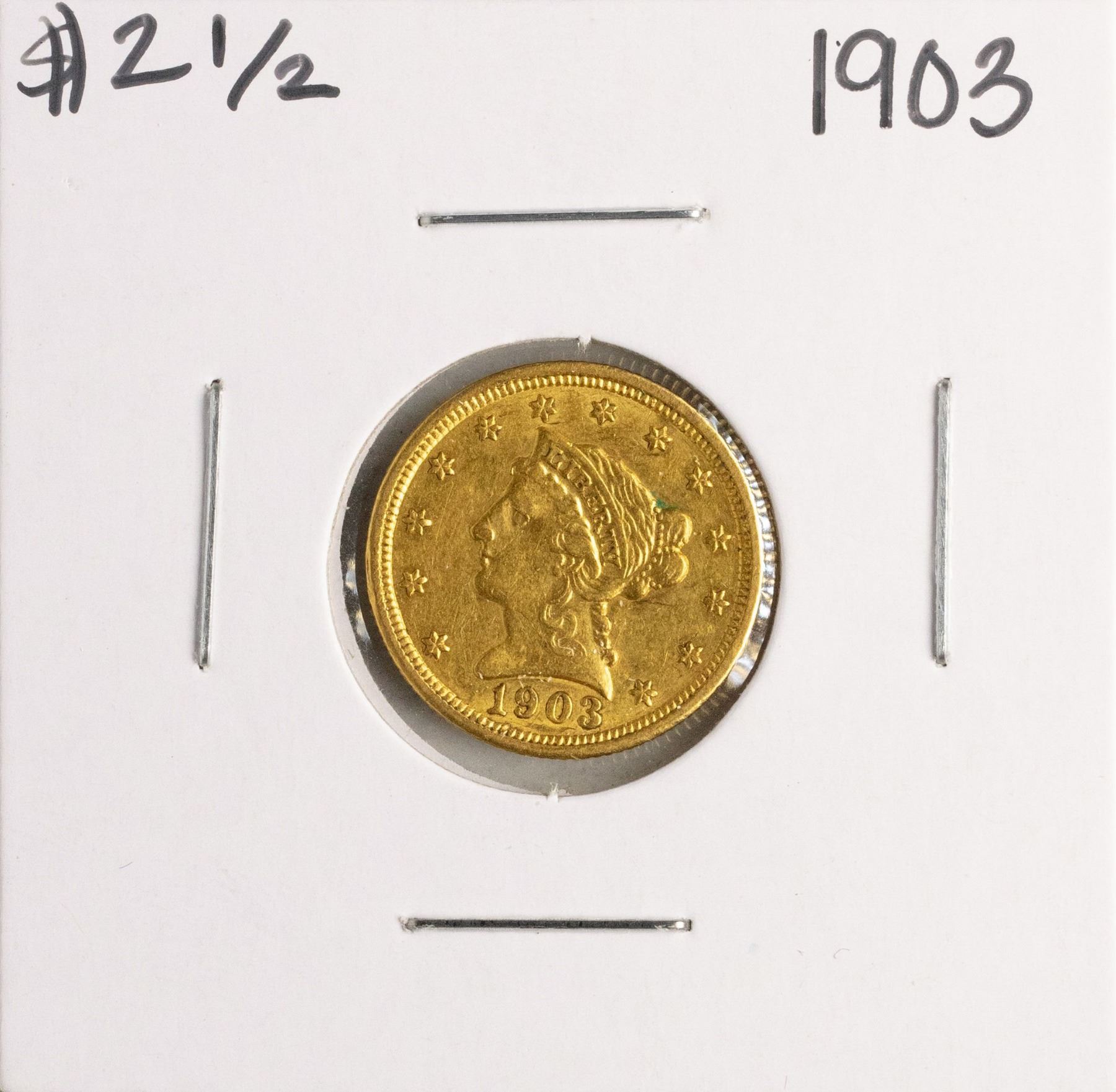 One 1903 $2 1/2 Liberty Head Quarter Eagle Gold Coin.