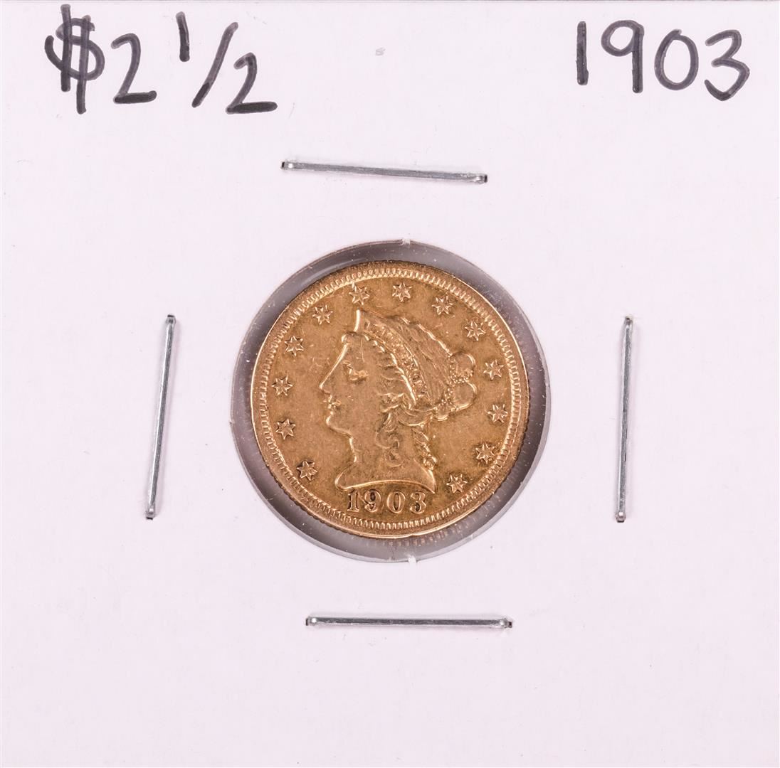 One 1903 $2 1/2 Liberty Head Quarter Eagle Gold Coin.