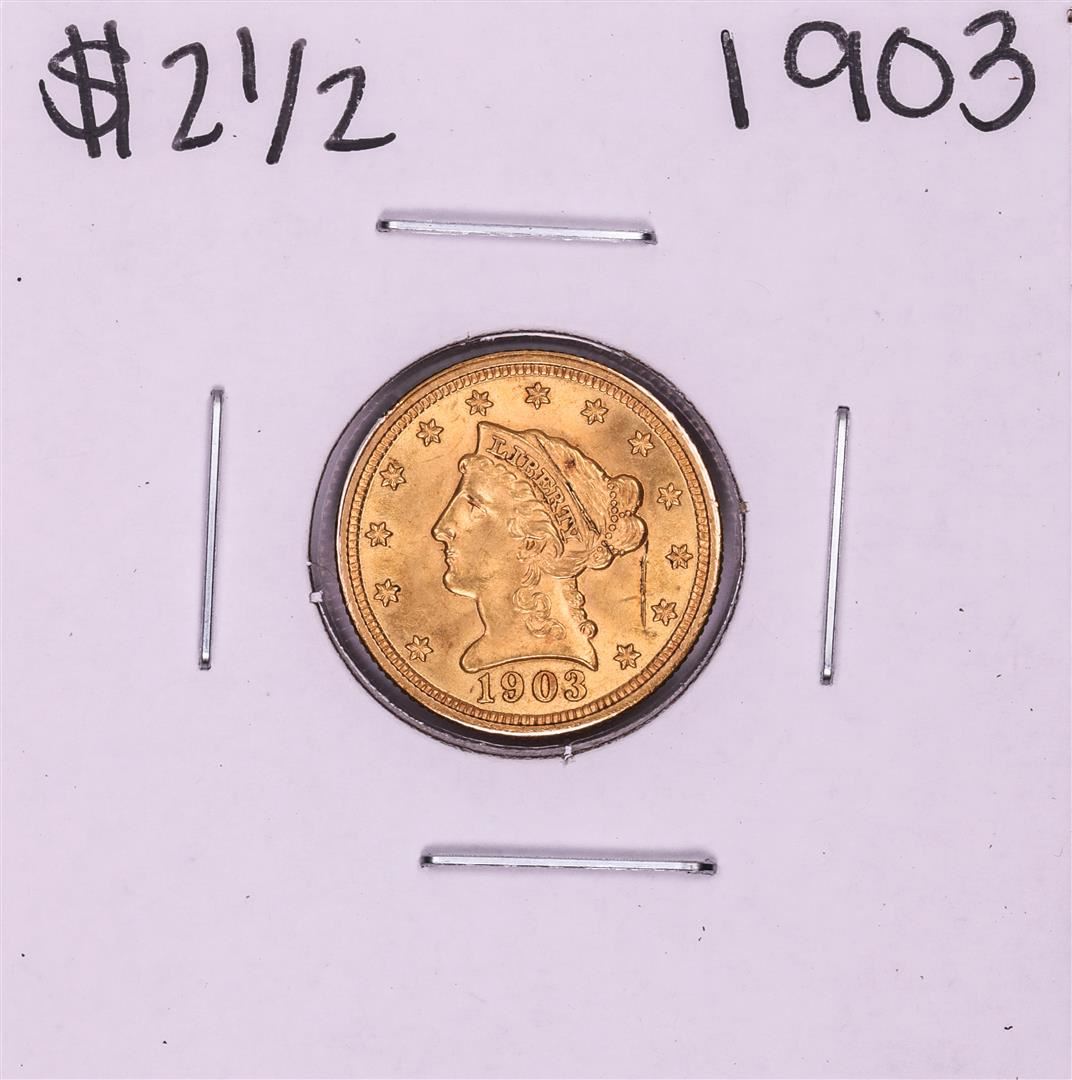 One 1903 $2 1/2 Liberty Head Quarter Eagle Gold Coin.