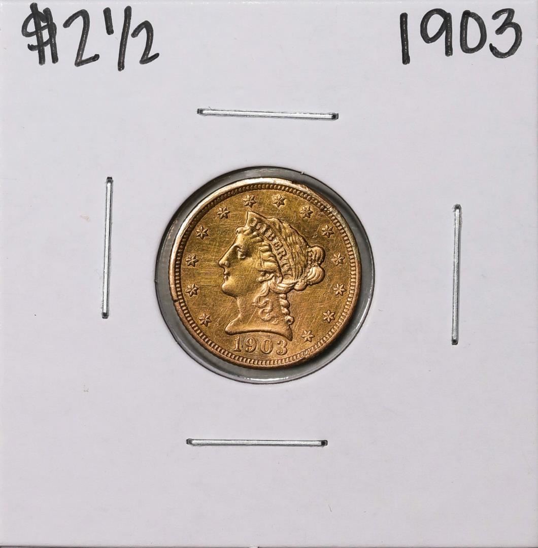 One 1903 $2 1/2 Liberty Head Quarter Eagle Gold Coin, please note the coin has damage as shown in the pictures.