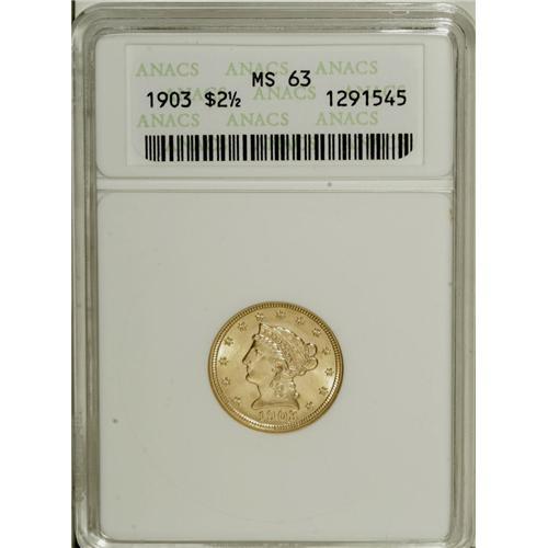 1903 $2 1/2 MS63 ANACS. This exactingly struck Select