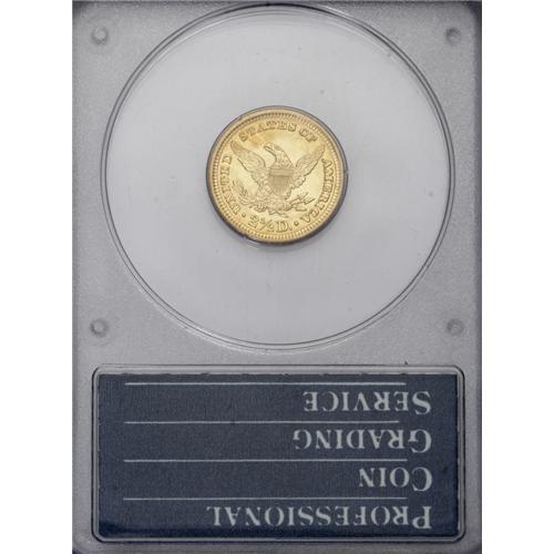 <B>1903<$2 1/2> MS64 PCGS.</B></I> Blushes of peach toning endow this well struck and thoroughly lustrous near-Gem. An attractive gold type coin, housed in a first generation holder. <BR><BR><B>Important notice:</B> Heritage usually auctions material at the rate of 200-250 lots per hour. On some occasions eBay Live bid software or the Internet may not be able to keep up with the pace of the auction. We recommend placing a realistic absentee bid now as insurance to avoid disappointment. Occasionally the auctioneer may eliminate or reject an eBay Live bid, and the auctioneer may also reopen a lot after the close of the eBay live bidding (usually because we missed an audience bid), and may reject your bid even if it shows you as the winning bidder. By bidding via eBay Live, you agree that Heritage may award the lot to another bidder at its sole discretion under the circumstances described above or any other reasonable circumstances. Since eBay bids are not shown to us until we open the lot on the floor, we treat those bids just like floor bids. In most cases the floor responds before the eBay bid is presented to us, due to Internet lag time, so for consistency we have made it a policy that floor bids are always considered first over tie eBay live bids. Also please note that all Heritage lots purchased through eBay Live carry a 20% Buyer's Premium. Please make sure you read the Terms and Conditions before you bid. This lot is being auctioned in conjunction with a live floor auction by Heritage Galleries & Auctioneers. All final auction and invoice information will be supplied by Heritage Galleries & Auctioneers, and all other information should be considered preliminary. Lot:2450 <BR><BR><B>Winning Notification and Billing:</B> After the FINAL session in this auction is complete, Heritage will send e-mail and snail mail invoices. This process normally takes several days. All final auction and invoice information will be supplied by Heritage Galleries & Auctioneers, and all other information should be considered preliminary. <BR><BR>This auction will be conducted on a live auction floor and over the Internet through eBay Live. If you choose to place an absentee bid, please take a moment to <font color='#0000ff'><u><a href='http://pages.ebay.com/liveauctions/help/before/laabsentee.html'>learn how eBay Live absentee bidding works</a></u></font><font color='#000000'>