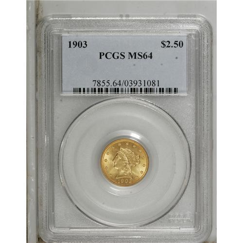 1903 $2 1/2 MS64 PCGS. This near-Gem two and one-half