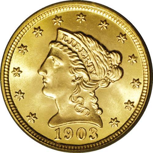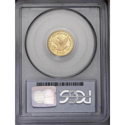 <B>1903 $2 1/2 MS67 PCGS.</B></I> A scintillating, Superb Gem with pinpoint detailing throughout. The bright surfaces are a pretty yellow-gold, and are impeccably preserved. A few trivial marks and luster grazes on Liberty's face are within the parameters of the MS67 grade level, and do not distract in the least from the coin's outstanding eye appeal. One of the more obtainable Liberty quarter eagle issues in this outstanding condition, all the more reason to consider the present example to represent the design in a high quality type set. Population: 45 in 67, 0 finer (12/05).