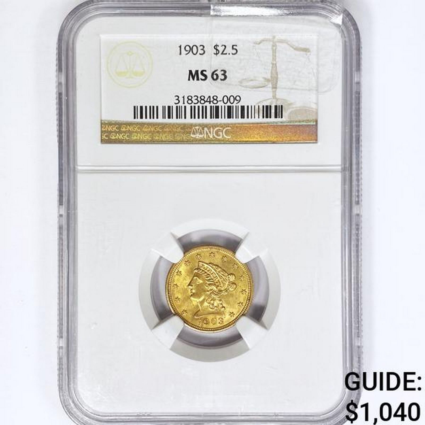 1903 $2.50 Gold Quarter Eagle NGC MS63