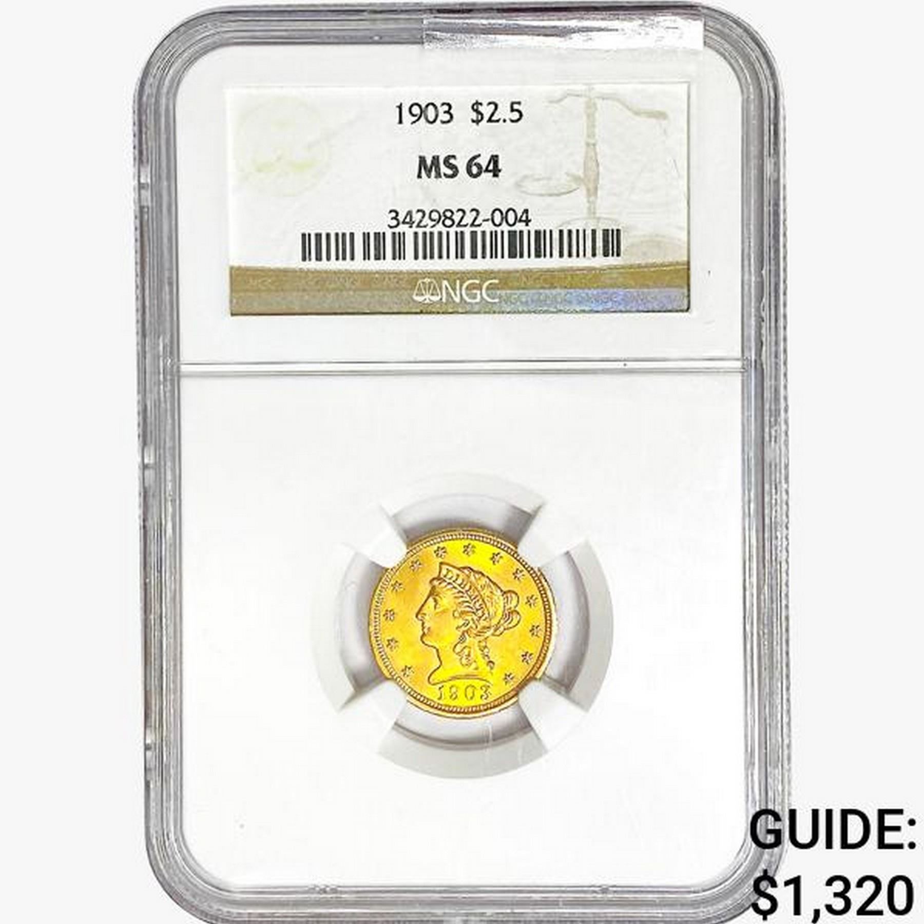 1903 $2.50 Gold Quarter Eagle NGC MS64