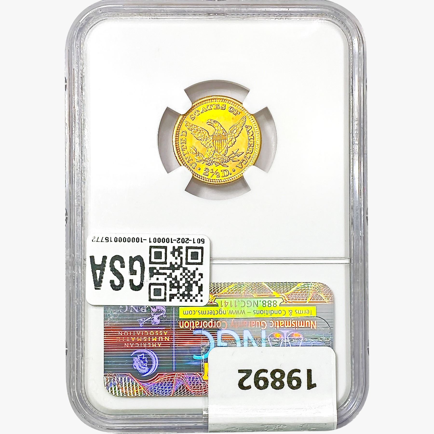 e. Coins sold referencing a third-party grading service are sold “AS IS” without any express or implied warranty, except for a guarantee by GSA that they are genuine. Removal or alteration of the holder, voids all of Bidder’s claims concerning that Product. Certain warranties may be available from the grading services and Bidders are referred to them for further details: Numismatic Guaranty Corporation (NGC), PO Box 4776, Sarasota, FL 34230, www.ngccoin.com/services/writtenguarantee.asp; Professional Coin Grading Services (PCGS), PO Box 9458, Newport Beach, CA 92658, www.pcgs.com/guarantee.html; ANACS, 6555 S. Kenton St., Ste. 303, Englewood, CO 80111; and Independent Coin Grading Co. (ICG), 7901 East Bellview, Ave., Suite 50, Englewood, CO 80111.