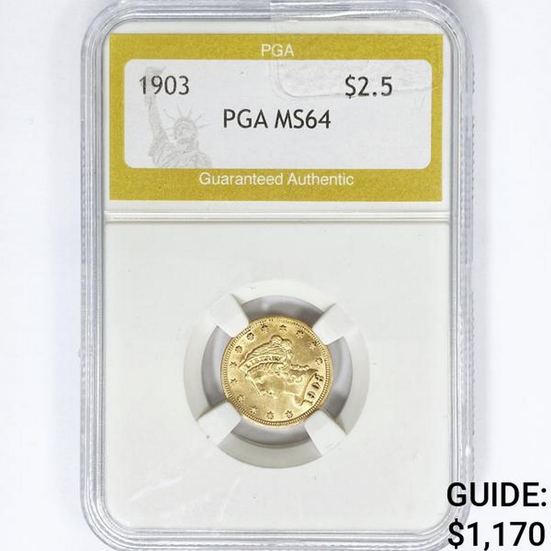 1903 $2.50 Gold Quarter Eagle PGA MS64