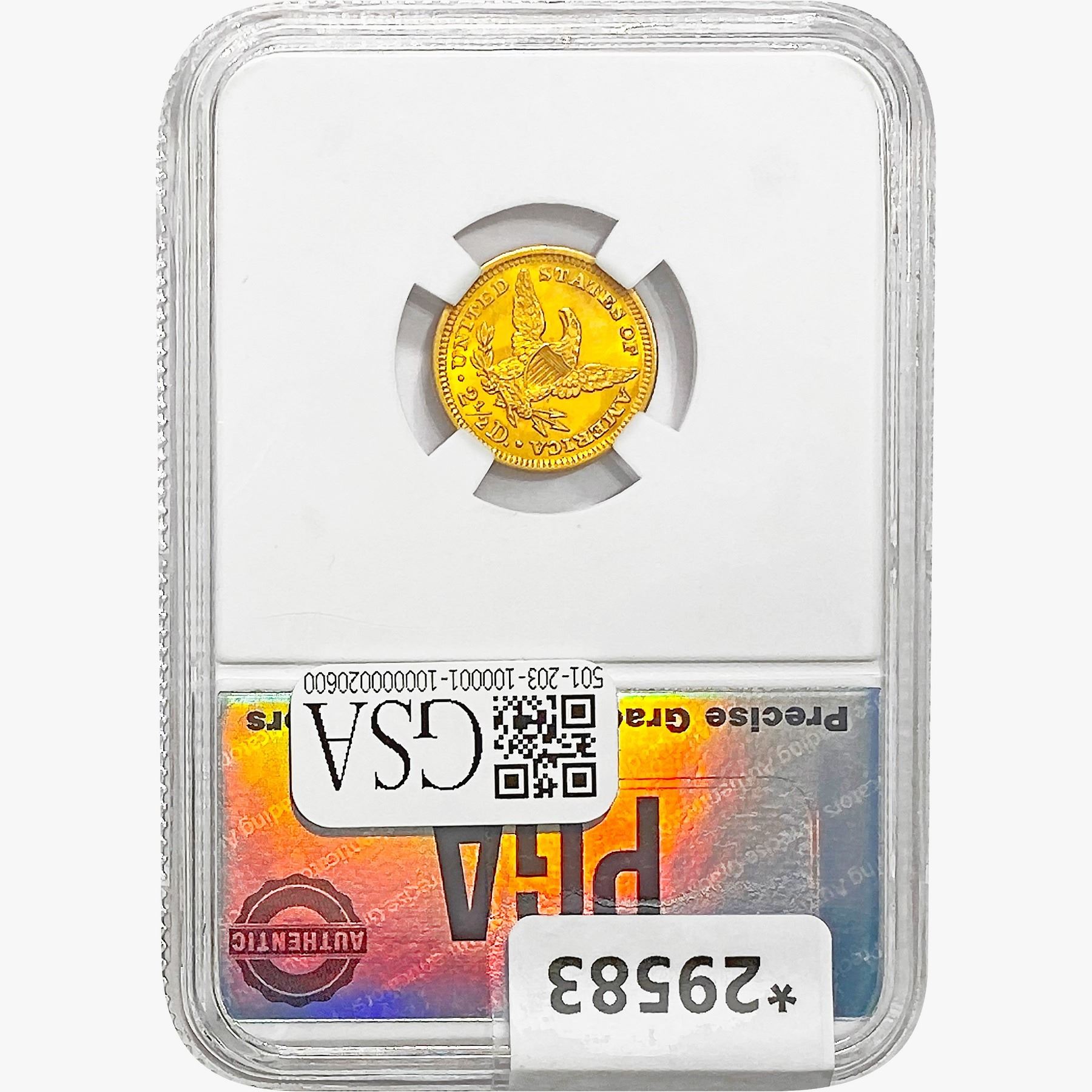 e. Coins sold referencing a third-party grading service are sold “AS IS” without any express or implied warranty, except for a guarantee by GSA that they are genuine. Removal or alteration of the holder, voids all of Bidder’s claims concerning that Product. Certain warranties may be available from the grading services and Bidders are referred to them for further details: Numismatic Guaranty Corporation (NGC), PO Box 4776, Sarasota, FL 34230, www.ngccoin.com/services/writtenguarantee.asp; Professional Coin Grading Services (PCGS), PO Box 9458, Newport Beach, CA 92658, www.pcgs.com/guarantee.html; ANACS, 6555 S. Kenton St., Ste. 303, Englewood, CO 80111; and Independent Coin Grading Co. (ICG), 7901 East Bellview, Ave., Suite 50, Englewood, CO 80111.
