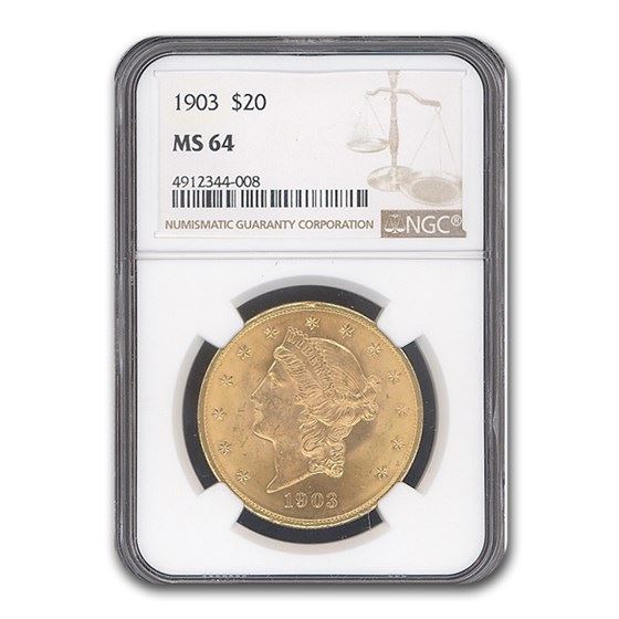 One piece 1903 $20 Liberty Gold Double Eagle MS-64 NGC