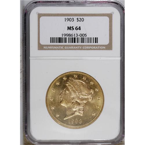 1903 $20 MS64 NGC. The fields have hints of reflectivi