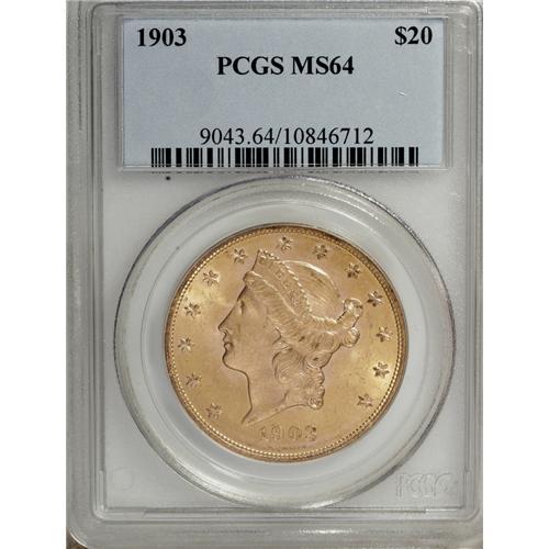 1903 $20 MS64 PCGS. Fully struck and highly lustrous,
