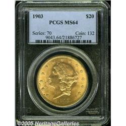 <B>1903 $20 MS64 PCGS.</B></I> Rich honey-gold color adds to the attraction of this lustrous near-Gem. The reverse is not far from pristine, and the obverse also has pleasing surfaces.