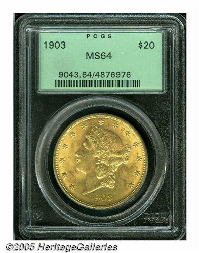 <B>1903<$20> MS64 PCGS.</B></I> Sharply struck with bright mint luster and few abrasions to comment on.