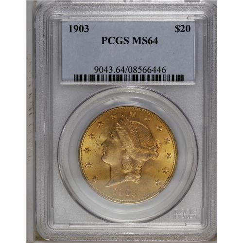1903 $20 MS64 PCGS. The lustrous yellow-orange surface