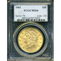 <B>1903 $20 MS64 PCGS.</B></I> This is an outstanding example with frosty yellow-gold luster and sharp design details. Lot:9321