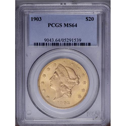 <B>1903<$20> MS64 PCGS.</B></I> This original green-gold double eagle has pleasing fields and an exquisitely smooth reverse. Minor grazes on the portrait are typical of the grade. A relatively low mintage date, especially in comparison with the ubiquitous 1904.