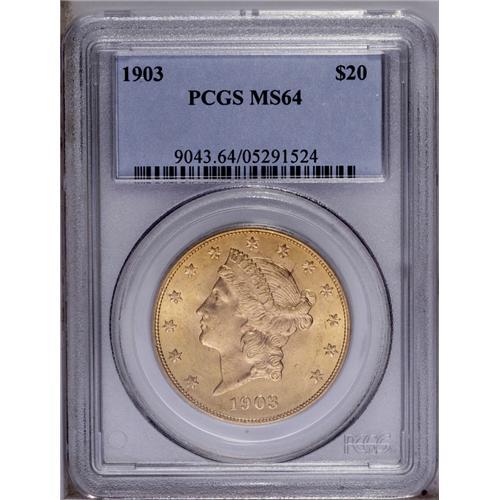 1903 $20 MS64 PCGS. Well frosted with a pleasing, sati