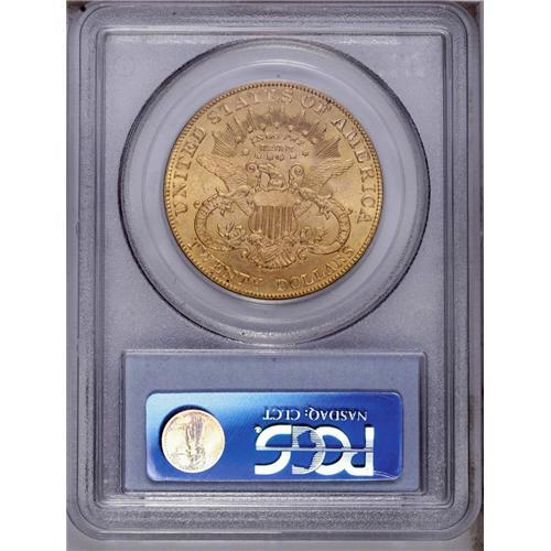 <B>1903<$20> MS64 PCGS.</B></I> Well frosted with a pleasing, satiny finish and only minor, well distributed surface marks. A thin planchet streak is hardly noticed at the back of the portrait. <BR><BR><B>Important notice:</B> Heritage usually auctions material at the rate of 200-250 lots per hour. On some occasions eBay Live bid software or the Internet may not be able to keep up with the pace of the auction. We recommend placing a realistic absentee bid now as insurance to avoid disappointment. Occasionally the auctioneer may eliminate or reject an eBay Live bid, and the auctioneer may also reopen a lot after the close of the eBay live bidding (usually because we missed an audience bid), and may reject your bid even if it shows you as the winning bidder. By bidding via eBay Live, you agree that Heritage may award the lot to another bidder at its sole discretion under the circumstances described above or any other reasonable circumstances. Since eBay bids are not shown to us until we open the lot on the floor, we treat those bids just like floor bids. In most cases the floor responds before the eBay bid is presented to us, due to Internet lag time, so for consistency we have made it a policy that floor bids are always considered first over tie eBay live bids. Also please note that all Heritage lots purchased through eBay Live carry a 20% Buyer's Premium. Please make sure you read the Terms and Conditions before you bid. This lot is being auctioned in conjunction with a live floor auction by Heritage Galleries & Auctioneers. All final auction and invoice information will be supplied by Heritage Galleries & Auctioneers, and all other information should be considered preliminary. Lot:4414 <BR><BR><B>Winning Notification and Billing:</B> After the FINAL session in this auction is complete, Heritage will send e-mail and snail mail invoices. This process normally takes several days. All final auction and invoice information will be supplied by Heritage Galleries & Auctioneers, and all other information should be considered preliminary. <BR><BR>This auction will be conducted on a live auction floor and over the Internet through eBay Live. If you choose to place an absentee bid, please take a moment to <font color='#0000ff'><u><a href='http://pages.ebay.com/liveauctions/help/before/laabsentee.html'>learn how eBay Live absentee bidding works</a></u></font><font color='#000000'>