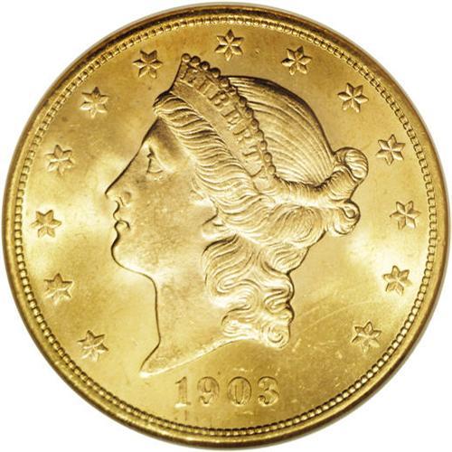 <B>1903 $20 MS65 NGC.</B></I> A true rarity in Gem grade when (unjustly) compared to the ubiquitous 1904 double eagle, the 1903 shows an MS65 certified population in the hundreds rather than the many thousands. This coin will elicit an "Oh, wow!" in all but the most jaded viewer, with its spicy orange fields, superb cartwheel luster, bold strike, and arm's-length eye appeal. NGC has graded only six pieces finer (12/06).<BR><BR><b>Shipping:</b> Coin/Currency (<a target="_blank" href="http://www.heritageauctions.com/common/shipping.php">view shipping information</a>)
