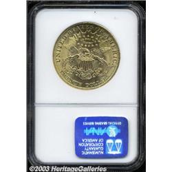 1903 $20 MS65 NGC. This well struck and frosty example has a gorgeously preserved reverse, which on its own merits would surely achieve a much higher grade. While the obverse is not pristine, the luster grazes are faint and do not impede the imposing mint luster. A mere five pieces have been certified in higher grades. Important notice: Heritage usually auctions material at the rate of 200-250 lots per hour. On some occasions eBay Live bid software or the Internet may not be able to keep up with the pace of the auction. We recommend placing a realistic absentee bid now as insurance to avoid disappointment. Occasionally the auctioneer may eliminate or reject an eBay Live bid, and the auctioneer may also reopen a lot after the close of the eBay live bidding (usually because we missed an audience bid), and may reject your bid even if it shows you as the winning bidder. By bidding via eBay Live, you agree that Heritage may award the lot to another bidder at its sole discretion under the circumstances described above or any other reasonable circumstances. Also please note that all Heritage lots purchased through eBay Live carry a 20% Buyer's Premium. Please make sure you read the Terms and Conditions before you bid.