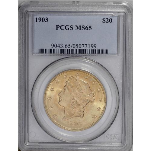 1903 $20 MS65 PCGS. Well struck and highly lustrous, w