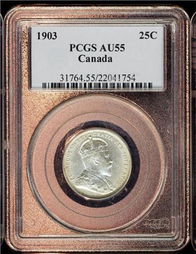 1903 25¢. A flashy blast white example graded PCGS AU55.