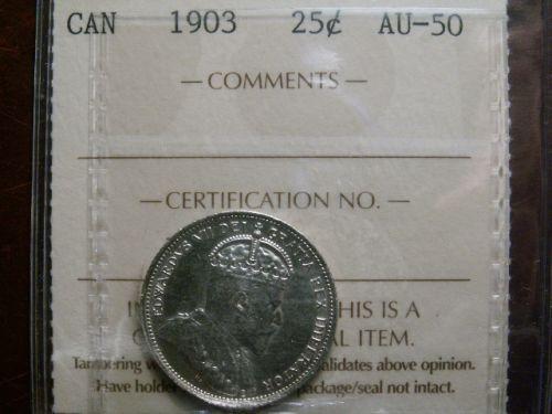 1903 25¢ ICCS AU50, brilliant and lustrous.