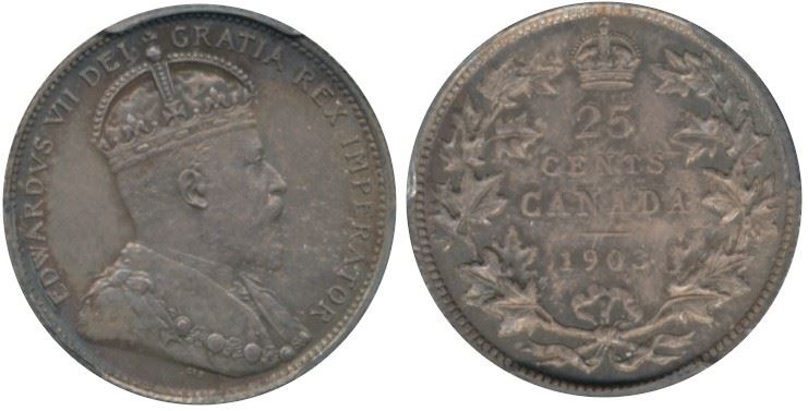 1903 25¢ PCGS MS62. Attractive green and gold deep tones.