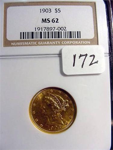 1903 $5.00 Liberty Gold Coin NGC MS 62