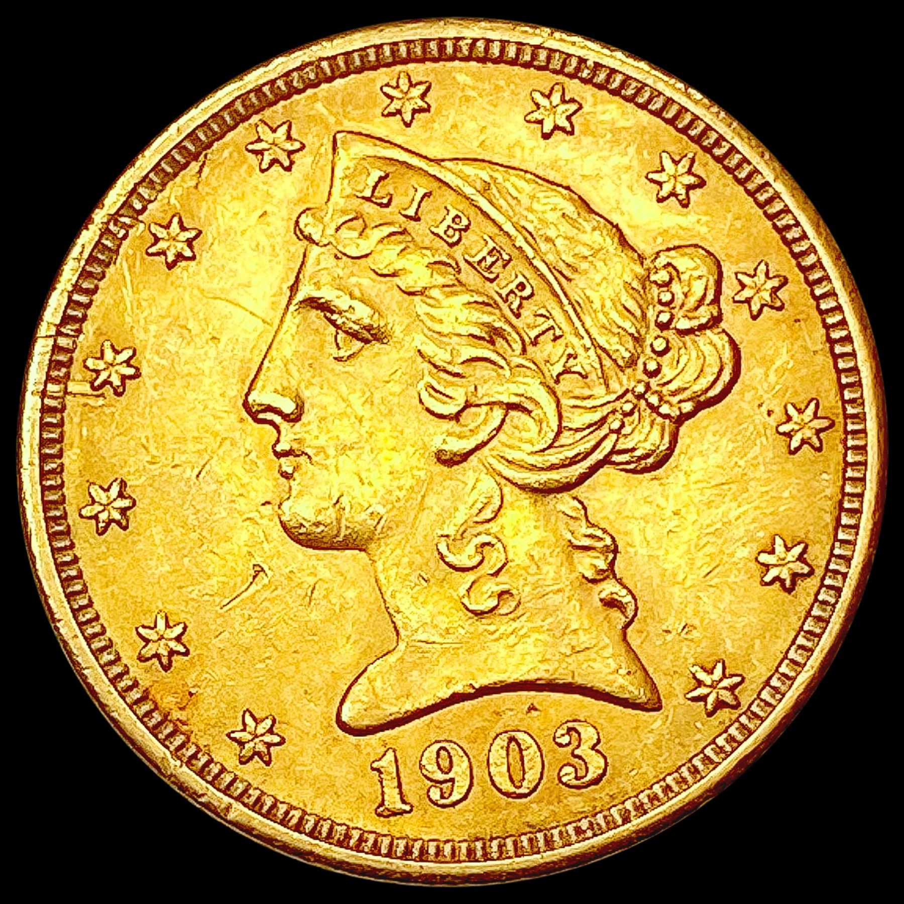 1903 $5 Gold Half Eagle CLOSELY UNCIRCULATED