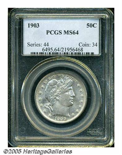 <B>1903<50C> MS64 PCGS.</B></I> Untoned and satiny with strong striking details overall. While the production numbers were generous with 2.27 million halves produced, this is a surprisingly scarce issue in MS64 condition. Population: 21 in 64, 6 finer (4/05).