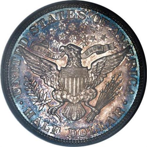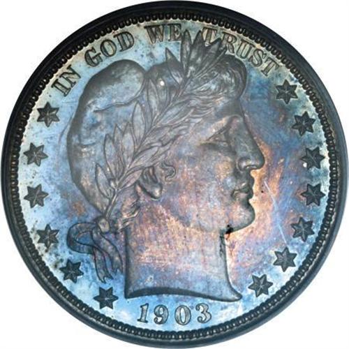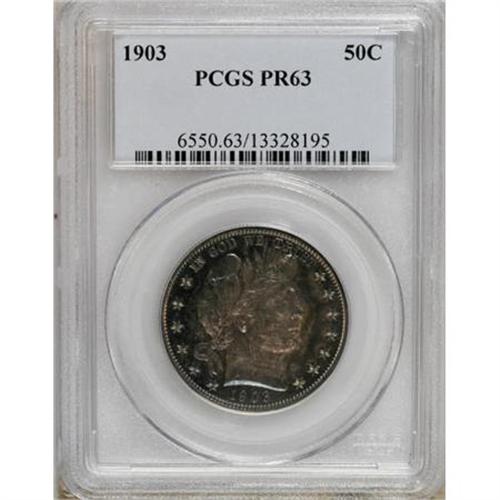 <B>1903 50C PR63 PCGS.</B></I> Vibrant patina is the prime asset of this attractive Select representative. Captivating sapphire, blue-green, rose, and gold-orange toning graces the devices and the lightly hairlined fields.<BR><BR><B>Coin Engraver:</B> Charles E. Barber<BR><BR><b>Shipping:</b> Coins & Currency (<a target="_blank" href="http://www.heritageauctions.com/common/shipping.php">view shipping information</a>)