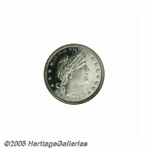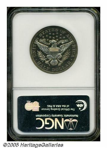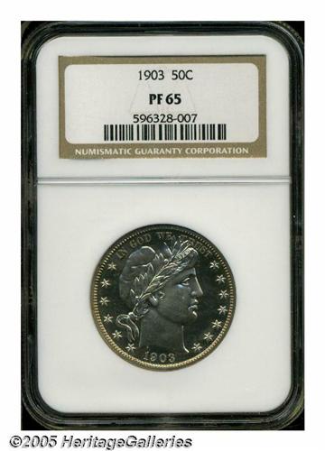 <B>1903<50C> PR65 NGC.</B></I> There is not a single noticeable blemish on either side of this fully struck proof. Both sides are lightly toned in dove-gray patina with accents of champagne-apricot iridescence over each side. An undeniably original example.