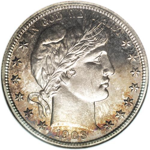 <B>1903 50C PR66 NGC.</B></I> Dappled golden-tan patination with lavender and cobalt-blue accents runs over the obverse of this Premium Gem proof half dollar, while speckles of deeper tan rest on the reverse. A well executed strike imparts sharp definition to the design features, and both faces are devoid of significant marks.<BR><I>From The Utah Collection.</B></I><BR><BR><b>Shipping:</b> Coins & Currency (<a target="_blank" href="http://www.heritageauctions.com/common/shipping.php">view shipping information</a>)