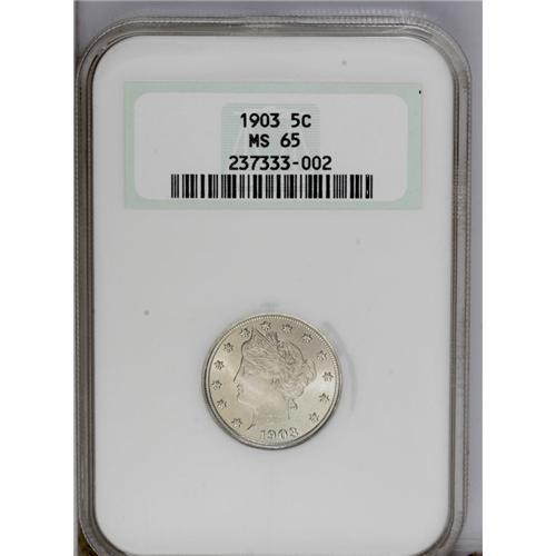 1903 5C MS65 NGC. This is a remarkable Gem with brilli 1903[5C] MS65 NGC.