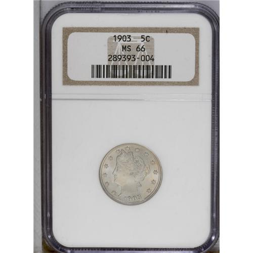 <B>1903<5C> MS66 NGC.</B></I> Boldly struck throughout save for minor weakness on the reverse left ear of corn, with rich luster and pleasing steel-gray toning that is augmented by faint apricot accents near the borders. Expertly preserved and virtually mark-free, a visually enticing Premium Gem. Census: 65 in 66, 2 finer (2/06). <BR><BR><B>Import