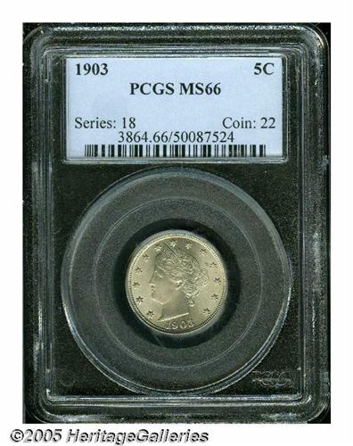 1903 5C MS66 PCGS. Bright, frosty luster shows th