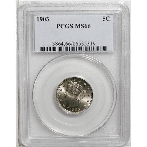1903 5C MS66 PCGS. Well struck with bright, matte-like