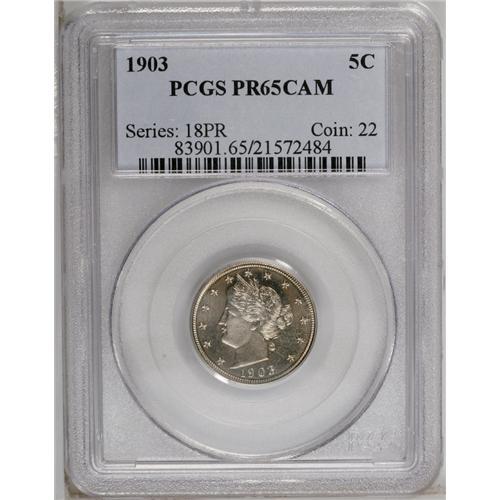 1903 5C PR65 Cameo PCGS. A brilliant Gem with delicate