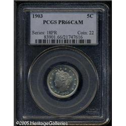 1903 5C PR66 Cameo PCGS. Exquisitely struck, with