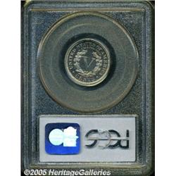 <B>1903 5C PR66 Cameo PCGS.</B></I> This year marks the first year proof coinage was available after 1901 with any degree of cameo contrast. And the few coins that are available as cameos are not a result of a conscious decision on the part of mint employees, but purely a coincidence of having been struck from a new pair of dies. This is a modestly contrasted example that probably would show a stronger cameo effect but each side is lightly draped in golden toning. Population: 19 in 66 Cameo, 7 finer (2/05).