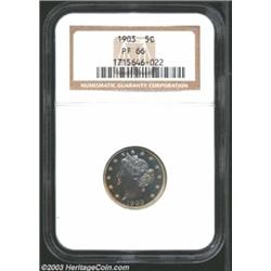 <TABLE cellSpacing=0 cellPadding=0 width="100%" bgColor=#000000 border=0><TBODY><TR><TD width="100%"><TABLE cellSpacing=1 cellPadding=3 width="100%" border=0><TBODY><TR><TD width="100%" bgColor=#79735c><FONT face=arial color=#ffffff size=3><B>Description</B> </FONT></TD></TR><TR><TD width="100%" bgColor=#ffffff><FONT face=arial size=2><B>1903 5C PR66 NGC.</B></I> A delightful blend of lilac, mauve, yellow, and amber colors decorates the obverse , which is seemingly pristine. The reverse shows amber and lilac hues, and likewise appears free of surface flaws. Population: 93 in 66, 31 finer (7/03). </FONT></TD></TR></TBODY></TABLE></TD></TR></TBODY></TABLE><BR><A name=PricesRealized></A><TABLE cellSpacing=0 cellPadding=0 width="100%" bgColor=#000000 border=0><TBODY><TR><TD width="100%"><TABLE cellSpacing=1 cellPadding=3 width="100%" border=0><TBODY><TR><TD width="100%" bgColor=#79735c><A name=PR><FONT face=arial color=#ffffff size=3><B>Previous Prices from Heritage Auctions</B> </FONT></A></TD></TR><TR><TD bgColor=#f6f6ed><TABLE cellSpacing=0 cellPadding=0 width="100%" border=1><TBODY><TR><TD align=middle width="33%"><B>Date</B></TD><TD align=middle width="33%"><B>Service</B></TD><TD align=middle width="33%"><B>Price</B></TD></TR><TR bgColor=whitesmoke><TD width="33%"><B>11/23/2002</B></TD><TD width="33%">PCGS</TD><TD width="33%">$661.25</TD></TR><TR bgColor=whitesmoke><TD width="33%"><B>10/22/1993</B></TD><TD width="33%">PCGS</TD><TD width="33%">$660.00</TD></TR><TR bgColor=whitesmoke><TD width="33%"><B>05/03/2003</B></TD><TD width="33%">PCGS</TD><TD width="33%">$747.50</TD></TR><TR bgColor=whitesmoke><TD width="33%"><B>01/11/2003</B></TD><TD width="33%">NGC</TD><TD width="33%">$603.75</TD></TR><TR bgColor=whitesmoke><TD width="33%"><B>07/30/2002</B></TD><TD width="33%">NGC</TD><TD width="33%">$517.50</TD></TR><TR bgColor=whitesmoke><TD width="33%"><B>04/28/2002</B></TD><TD width="33%">NGC</TD><TD width="33%">$552.00</TD></TR><TR bgColor=whitesmoke><TD width="33%"><B>02/23/2002</B></TD><TD width="33%">NGC</TD><TD width="33%">$552.00</TD></TR><TR bgColor=whitesmoke><TD width="33%"><B>06/01/2000</B></TD><TD width="33%">NGC</TD><TD width="33%">$552.00</TD></TR><TR bgColor=whitesmoke><TD width="33%"><B>04/23/1999</B></TD><TD width="33%">NGC</TD><TD width="33%">$632.50</TD></TR><TR bgColor=whitesmoke><TD width="33%"><B>07/29/2003</B></TD><TD width="33%">PCGS</TD><TD width="33%">$862.50</TD></TR><TR bgColor=whitesmoke><TD width="33%"><B>02/22/1997</B></TD><TD width="33%">NGC</TD><TD width="33%">$715.00</TD></TR></TBODY></TABLE></TD></TR><TR><TD bgColor=#ffffff><FONT face=arial size=1 ?>PLEASE NOTE: All prices realized reflect the final hammer price PLUS the buyer's premium in auctions that charge a buyer's premium. Each item has a notation at the top of the listing indicating whether that lot included a buyer's premium. Example: A item that sells with a final hammer price of $100 and a 20% buyer's premium will display with a price realized of $120. All information listed is intended to be as accurate as possible, but errors are possible. Please use this guide carefully and inform us of any inaccuracies. </FONT></TD></TR></TBODY></TABLE></TD></TR></TBODY></TABLE><BR><TABLE cellSpacing=0 cellPadding=0 width="100%" bgColor=#000000 border=0><TBODY><TR><TD width="100%"><TABLE cellSpacing=1 cellPadding=3 width="100%" border=0><TBODY><TR><TD width="100%" bgColor=#79735c colSpan=6><FONT face=arial color=#ffffff size=3><B>Price Guide*</B> </FONT></TD></TR><TR bgColor=#f6f6ed><TD align=middle><B>Grade</B> </TD><TD align=middle><B>Coin World<BR>(Trends)</B> </TD><TD align=middle><B>Numismedia<BR>Retail</B> </TD><TD align=middle><B>Numismedia<BR>Wholesale</B> </TD><TD align=middle><B>Coin<BR>Universe</B> </TD><TD align=middle><B>Heritage<BR>Value Index</B> </TD></TR><TR bgColor=#ffffff><TD align=middle>65</TD><TD align=right>---</TD><TD align=right>$525.00</TD><TD align=right>$420.00</TD><TD align=right>$600.00</TD><TD align=right>$353.17</TD></TR><TR style="FONT-WEIGHT: bold" bgColor=#cccfdd><TD align=middle>66</TD><TD align=right>---</TD><TD align=right>$880.00</TD><TD align=right>$680.00</TD><TD align=right>$825.00</TD><TD align=right>$551.25</TD></TR><TR bgColor=#ffffff><TD align=middle>67</TD><TD align=right>---</TD><TD align=right>---</TD><TD align=right>$1,750.00</TD><TD align=right>$2,400.00</TD><TD align=right>$1,577.50</TD></TR><TR bgColor=#ffffff><TD colSpan=6><FONT size=1>*All information listed is intended to be as accurate as possible, but errors are possible. No item may be returned or refused based on this information which is provided as a service to our customers. You should contact each pricing source directly to determine the accuracy of this information. </FONT></TD></TR></TBODY></TABLE></TD></TR></TBODY></TABLE><BR><TABLE cellSpacing=0 cellPadding=0 width="100%" bgColor=#000000 border=0><TBODY><TR><TD width="100%"><TABLE cellSpacing=1 cellPadding=3 width="100%" border=0><TBODY><TR><TD width="100%" bgColor=#79735c><FONT face=arial color=#ffffff size=3><B>Population Guide</B> </FONT></TD></TR><TR bgColor=#ffffff><TD align=middle><!-- Begin Output of Population Grid--><TABLE cellSpacing=0 cellPadding=0 width="100%" border=0><TBODY><TR><TD vAlign=center><TABLE cellSpacing=0 width="100%" border=1 cellsadding="3"><TBODY><TR><TD vAlign=center><TABLE cellSpacing=0 cellPadding=3 width="100%" border=1><TBODY><TR><TD vAlign=center align=middle bgColor=#f0f1e8 colSpan=2 <CENTER><FONT face=Arial size=2><B>PCGS Pop </B></FONT><CENTER></CENTER></TD><TD vAlign=center align=middle bgColor=#f0f1e8 colSpan=2><CENTER><FONT face=Arial size=2><B>NGC Pop</B></CENTER></FONT></TD></TR><TR><TD vAlign=center><FONT face=Arial size=2>(66)</FONT> </TD><TD vAlign=center align=right><FONT face=Arial size=2>51</FONT> </TD><TD vAlign=center><FONT face=Arial size=2>(66)</FONT> </TD><TD vAlign=center align=right><FONT face=Arial size=2>93</FONT> </TD></TR><TR><TD vAlign=center><FONT face=Arial size=2>(>66)</FONT> </TD><T