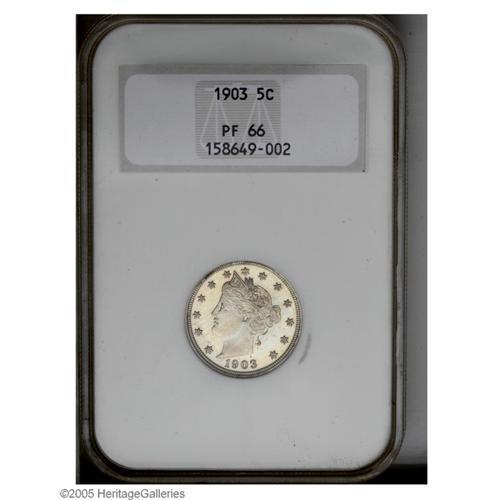 1903 5C PR66 PCGS. An exquisitely preserved proof Libe 1903[5C] PR66 PCGS.