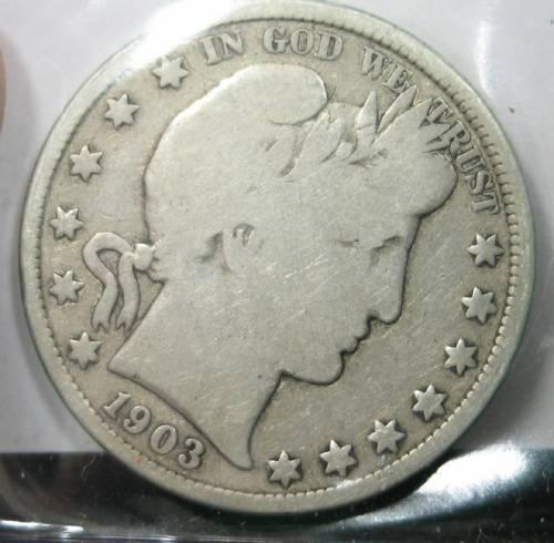 1903 BARBER HALF-DOLLAR COIN. VG-8.