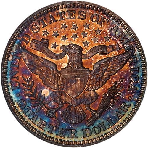 Mintage for this date is 755 proofs. A yellow and pink cameo obverse, and a red and blue reverse, all original and very attractive. Eleven equal and none finer certified by the grading services. Bids $8000.