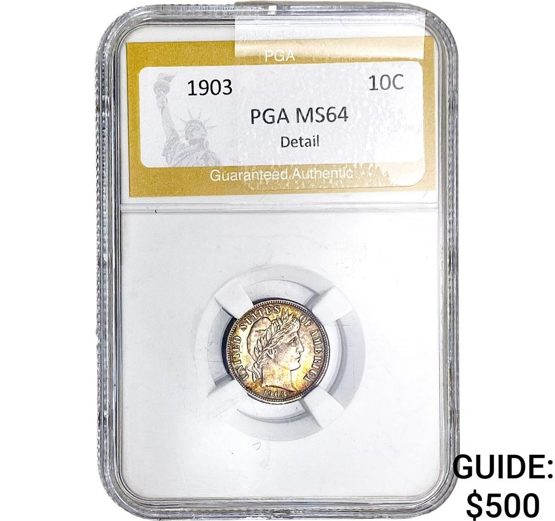 1903 Barber Dime PGA MS64 Detail