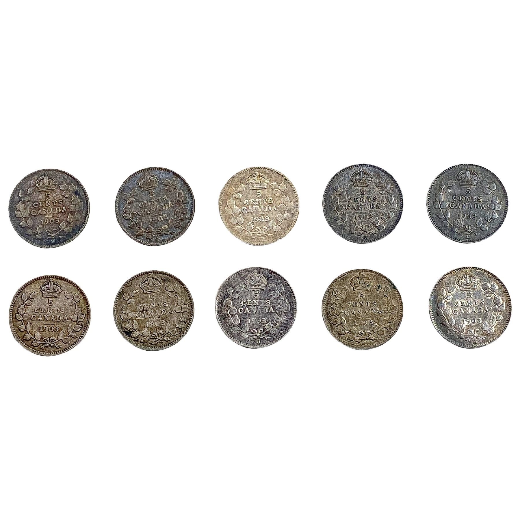 1903 Better Date Canada 5 Cent Silver [10 Coins]