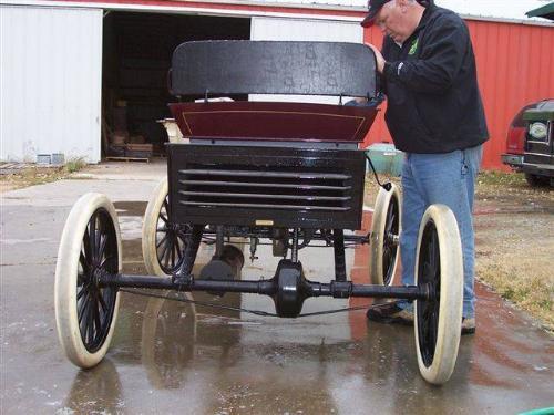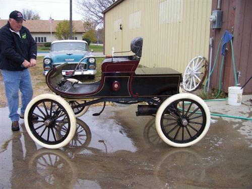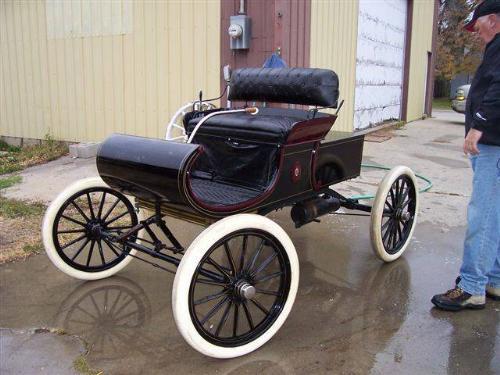 1903 CURVED DASH OLDS. - THIS IS A NICELY RESTORED 1903 CURVED DASH OLDS SELLING AT AUCTION IN OSLO, MN ON 10-15-05 AT AUCTION TO THE HIGHEST BIDDER. THERE IS NO RESERVE. THIS MODEL R RUNABOUT WON FIRST PRIVE IN THE ACA JR. COMPETITION IN 1986. IT IS A BEAUTIFUL MAROON AND BLACK WITH EMBLEMS. IT HAS A BLACK NICELY DONE SEAT FOR 2. IT HAS STICK STEERING AND RUNS AND DRIVES. IT HAS WOOD SPOKED WHEELS WITH HARD WHITE TIRES. THE FENDERS AND NOT THERE AND NOT WITH CAR. THE MOTOR IS A 1 CYLINDER WITH CAST IRON BLOCK. WHAT A RARE FIND AND WILL BE SLD TO THE HIGHEST BIDDER- WE ALSO HAVE A TOY THAT MATCHES THIS AND WILL BE SOLD ON THE SAME SALE. SELLING AS-IS.