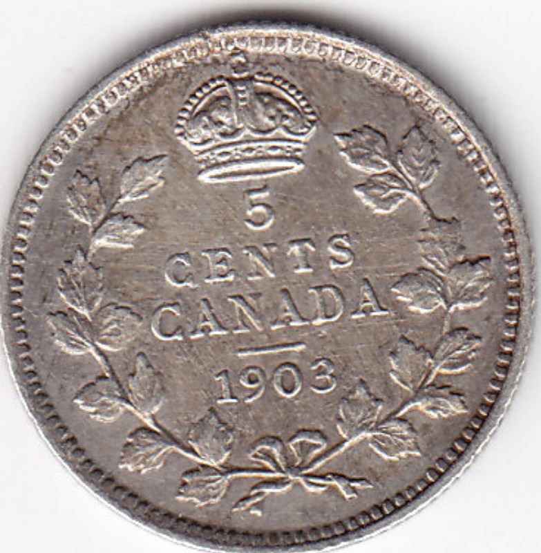 1903 Canadian Silver 5-Cent Coin - VF-30 Condition